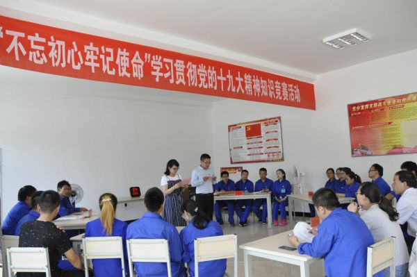 為紀(jì)念中國(guó)共產(chǎn)黨成立97周年,加強(qiáng)黨的基層組織建設(shè),提升黨員黨性修養(yǎng),7月19日,以“不忘初心 牢記使命”學(xué)習(xí)貫徹黨的十九大精神為主題的知識(shí)競(jìng)賽在公司黨員活動(dòng)室舉辦, 第一黨支部全體黨員、入黨積極分子和部分群眾出席并參與了競(jìng)賽。此次競(jìng)賽由第一黨支部主辦,黨群工作部協(xié)辦。