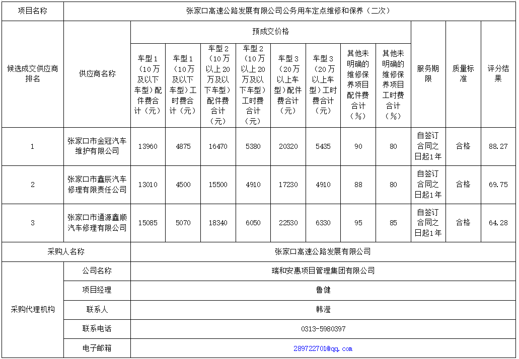 張家口高速公路發(fā)展有限公司公務用車定點維修和保養(yǎng)(二次)候選成交供應商公示
